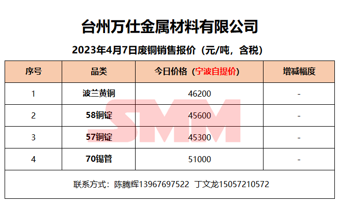 今日台州万仕金属,废铜销售报价已更新,有货的朋友欢迎联系我们!