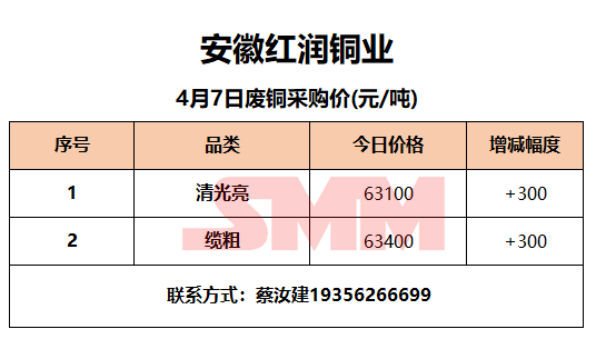4月7日安徽红润 废铜采购报价
