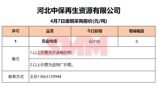 4月7日河北中保 废铜采购报价