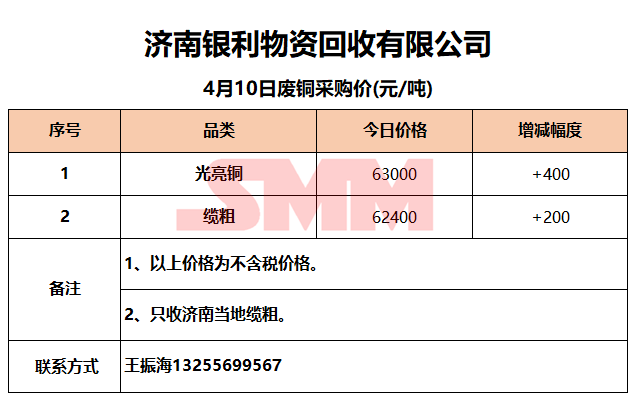 4月10日济南银利 废铜采购报价