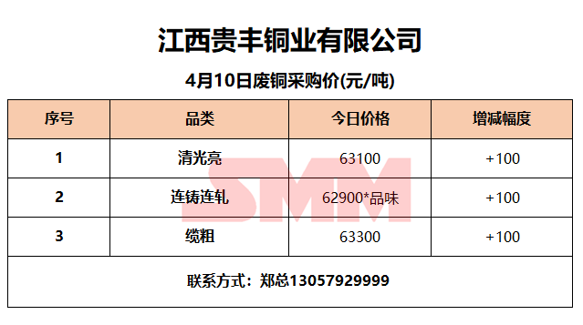 4月10日江西贵丰 废铜采购报价