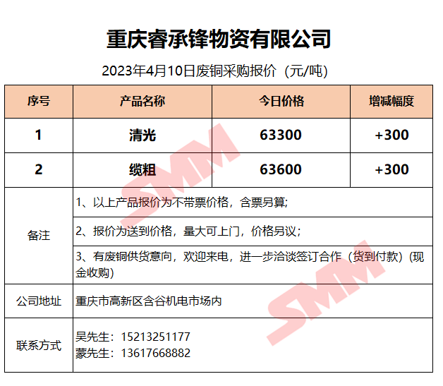 4月10日睿承锋物资 废铜收购报价