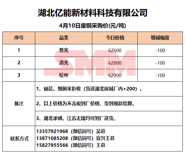 今日湖北亿能 废铜采购报价已更新,有货的朋友欢迎联系我们!