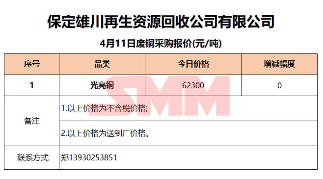 4月11日保定雄川 废铜采购报价