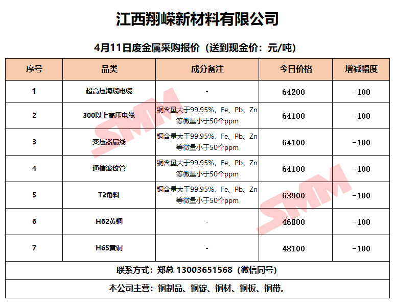 今日江西翔嵘新材料,废铜采购报价已更新,有货的朋友欢迎联系我们!