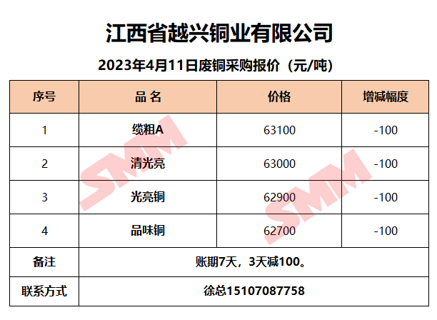 4月11日江西越兴 废铜采购报价