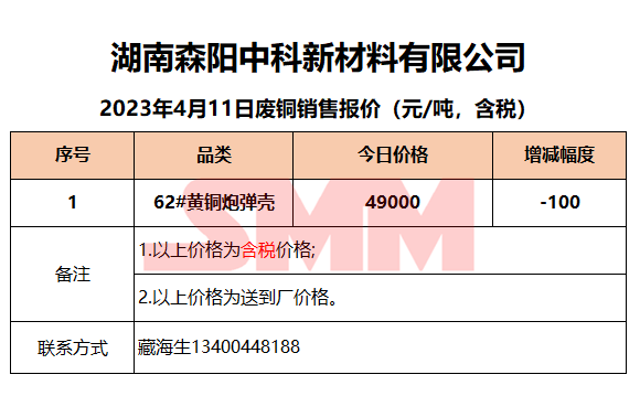 4月11日湖南森阳中科 废铜销售报价