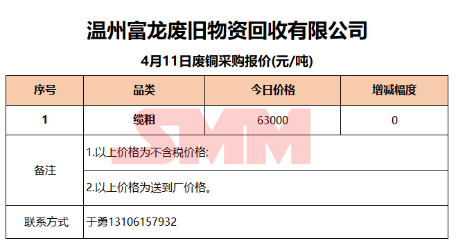 今日温州富龙废旧,废铜采购报价已更新,有货的朋友欢迎联系我们!