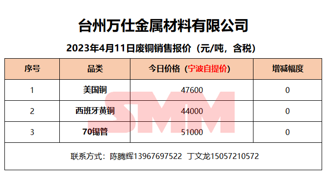 今日台州万仕金属,废铜销售报价已更新,有货的朋友欢迎联系我们!