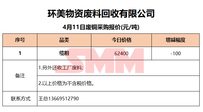 今日环美物资废料 ,废铜采购报价已更新,有货的朋友欢迎联系我们!