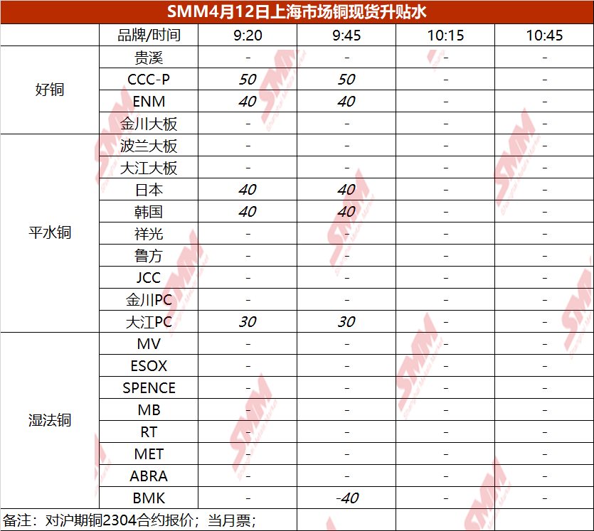 4月12日上海市场铜现货升贴水(第二时段)【SMM价格】