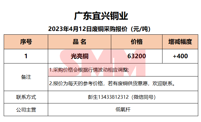 4月12日广东宜兴 废铜采购报价