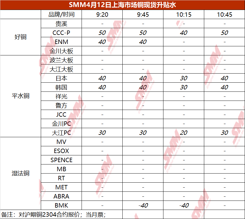 4月12日上海市场铜现货升贴水(第四时段)【SMM价格】