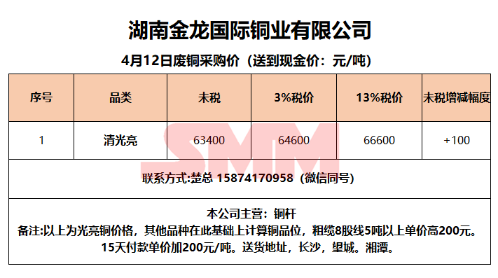 4月12日湖南金龙 废铜采购报价