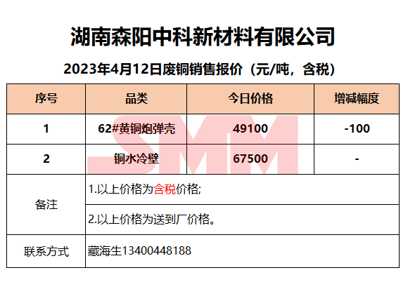 4月12日湖南森阳中科 废铜销售报价