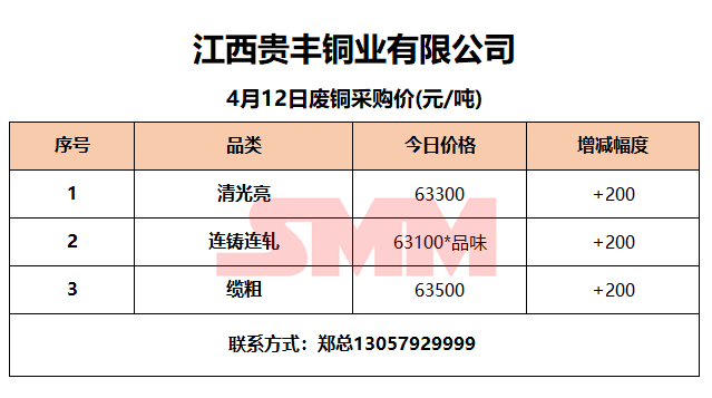 4月12日江西贵丰 废铜采购报价