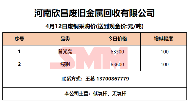 4月12日河南欣昌 废铜采购报价