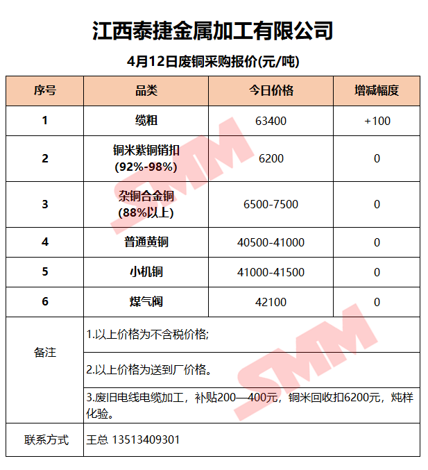 4月12日江西泰捷 废铜采购报价