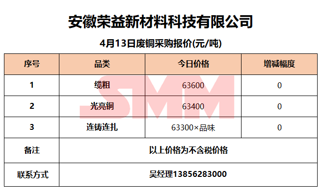 今日安徽荣益新材料,废铜采购报价已更新,有货的朋友欢迎联系我们!