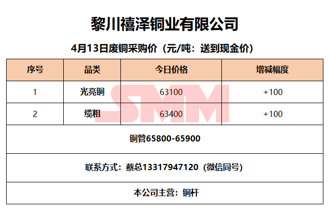 4月13日黎川禧泽铜业 废铜采购报价