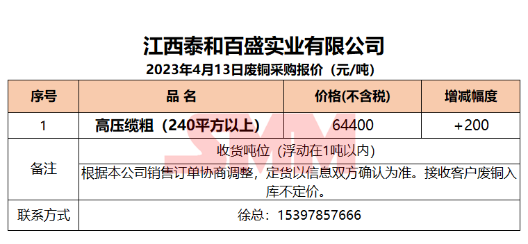4月13日江西泰和 废铜采购报价