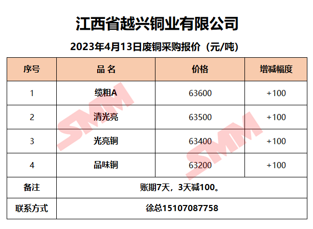 4月13日江西越兴 废铜采购报价