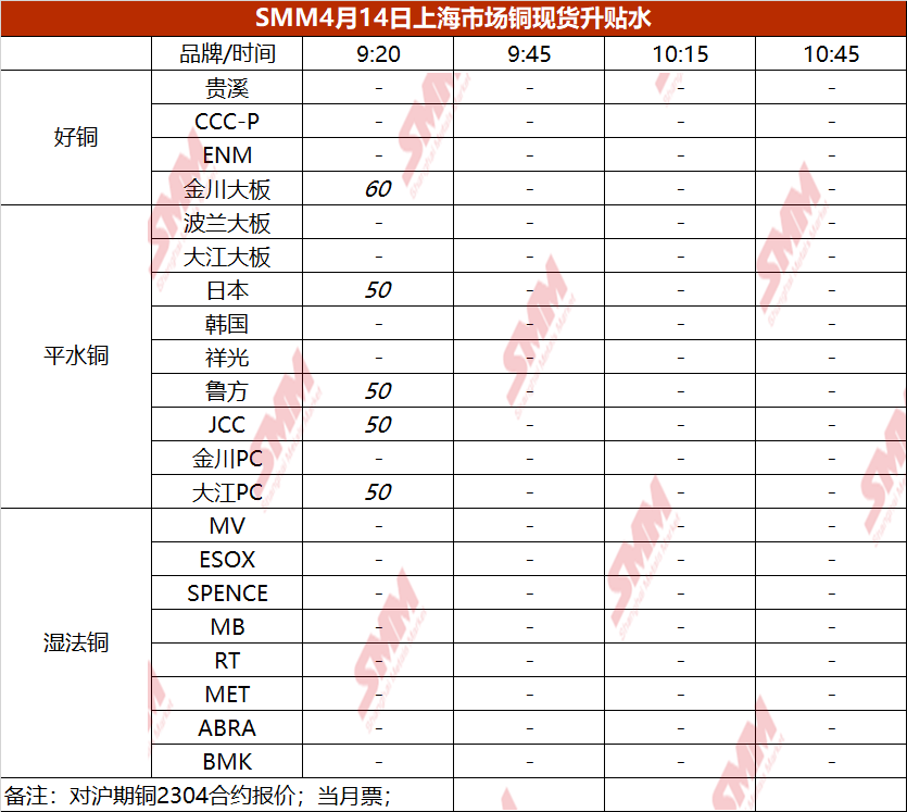 4月14日上海市场铜现货升贴水(第一时段)【SMM价格】