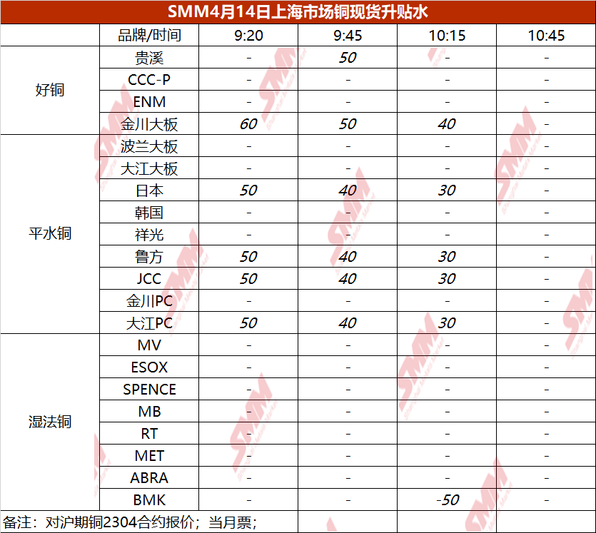 4月14日上海市场铜现货升贴水(第三时段)【SMM价格】