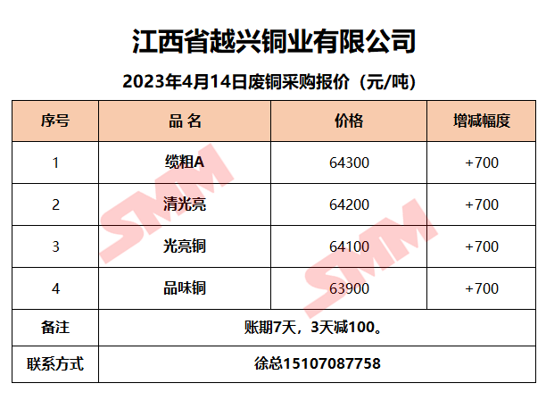 今日江西越兴,废铜采购报价已更新,有货的朋友欢迎联系我们!