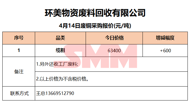 4月14日环美物资 废铜采购报价