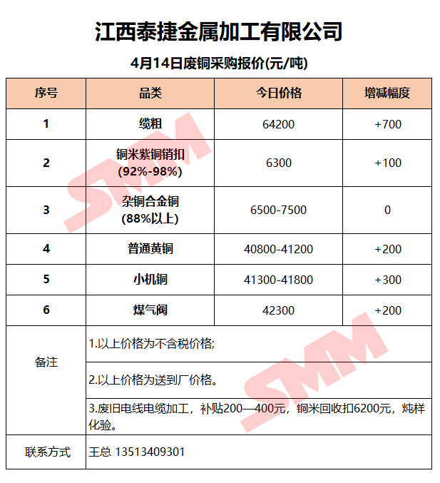 4月14日江西泰捷 废铜采购报价