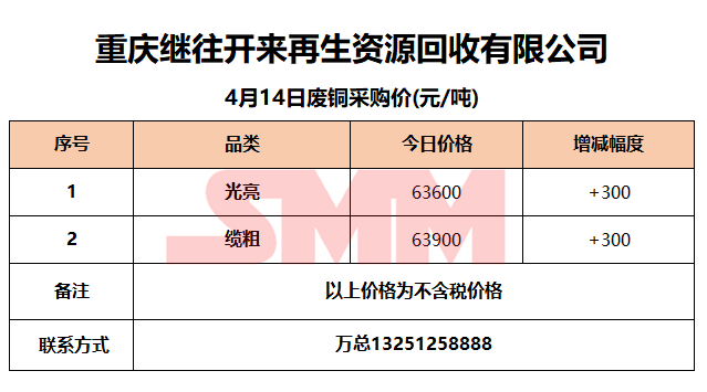 4月14日重庆继往开来 废铜采购报价