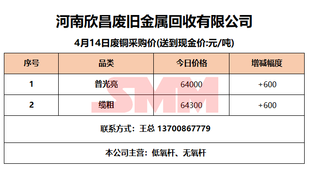 今日河南新昌铜业(欣昌),废铜采购报价已更新,有货的朋友欢迎联系我们!