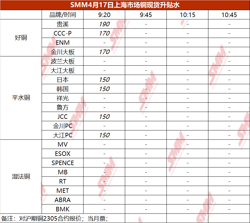 4月17日上海市场铜现货升贴水(第一时段)【SMM价格】