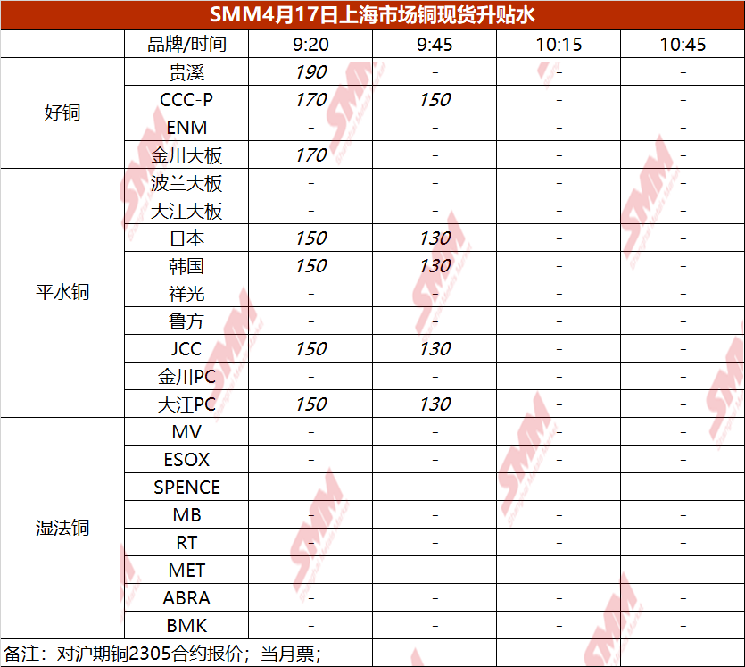 4月17日上海市场铜现货升贴水(第二时段)【SMM价格】