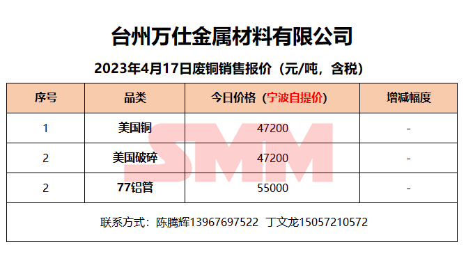 今日台州万仕金属,废铜销售报价已更新,有货的朋友欢迎联系我们!