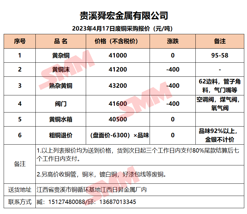 今日贵溪舜宏金属有限公司 ,废铜采购报价已更新,有货的朋友欢迎联系我们!