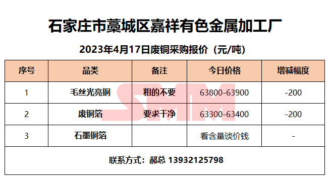 今日嘉祥有色金属,废铜采购报价已更新,有货的朋友欢迎联系我们!