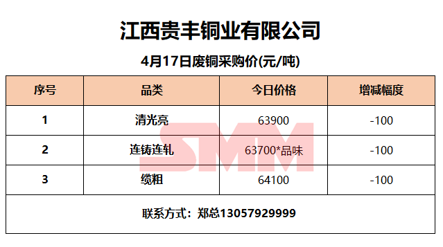 4月17日江西贵丰 废铜采购报价