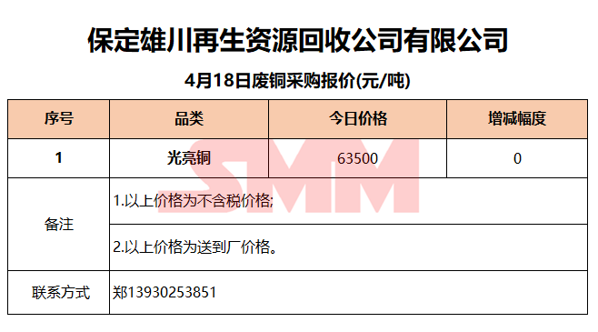 4月18日保定雄川 废铜采购报价