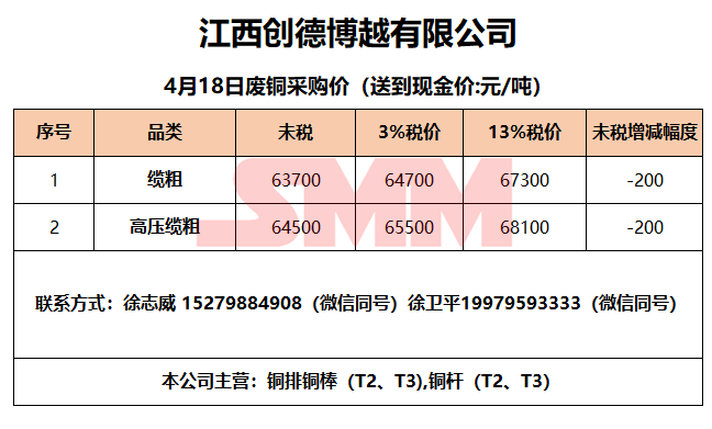 今日江西创德博越,废铜采购报价已更新,有货的朋友欢迎联系我们!