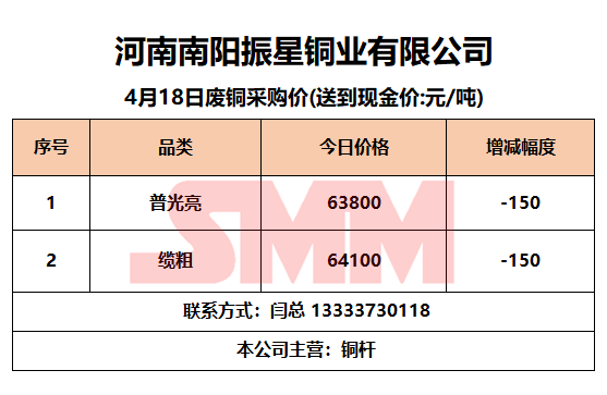 4月18日南阳振星 废铜采购报价