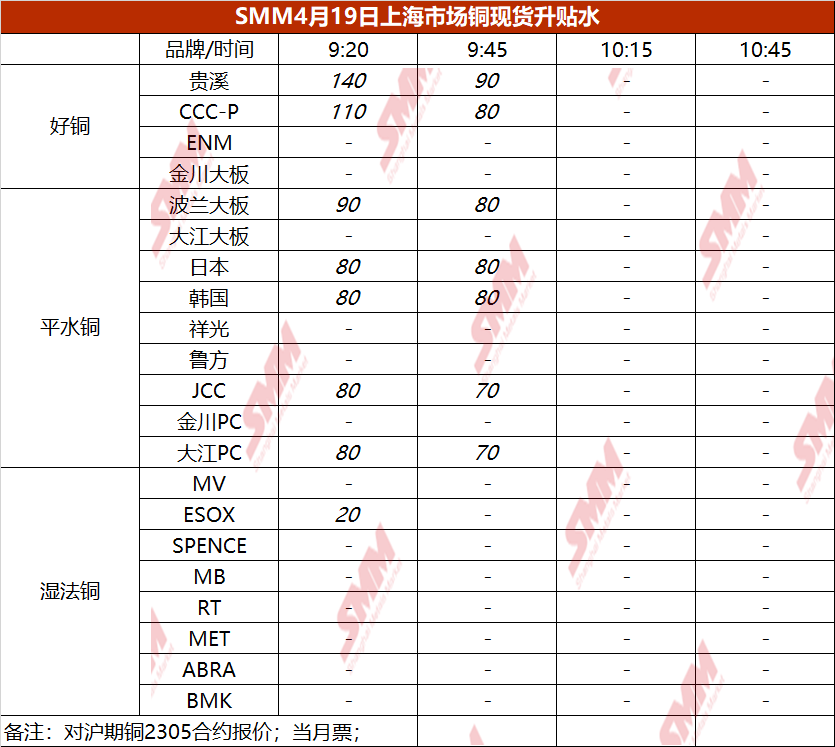 4月19日上海市场铜现货升贴水(第二时段)【SMM价格】