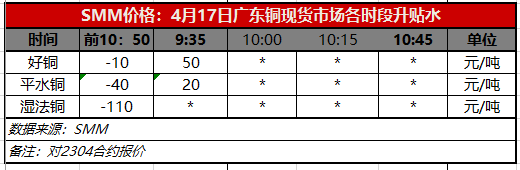 4月17日广东铜现货市场各时段升贴水(第一时段9:35)【SMM价格】