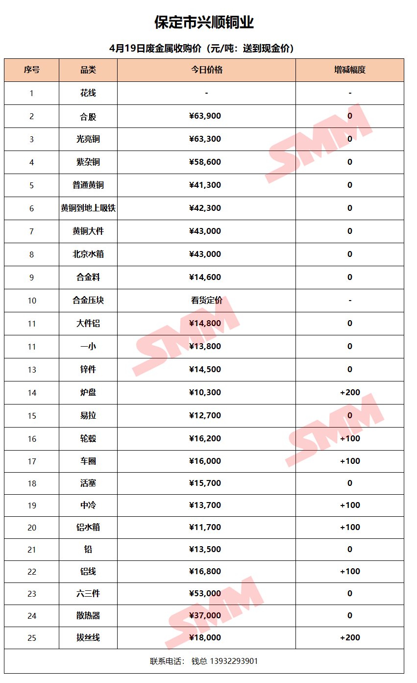今日保定兴顺铜业,废金属收购报价已更新,有货的朋友欢迎联系我们!
