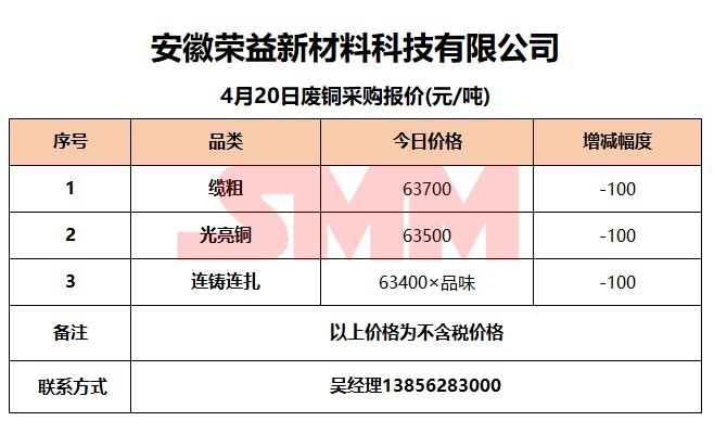 今日安徽荣益新材料,废铜采购报价已更新,有货的朋友欢迎联系我们!
