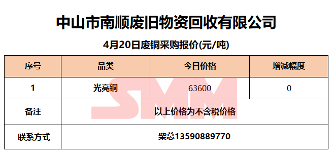 4月20日中山南顺 废铜采购报价