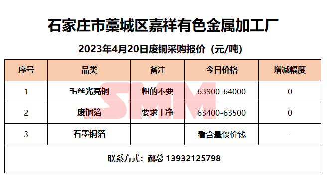 4月20日嘉祥有色金属 废铜采购报价