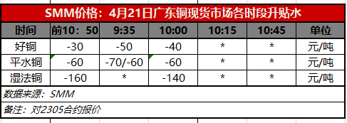4月21日广东铜现货市场各时段升贴水(第二时段10:00)【SMM价格】