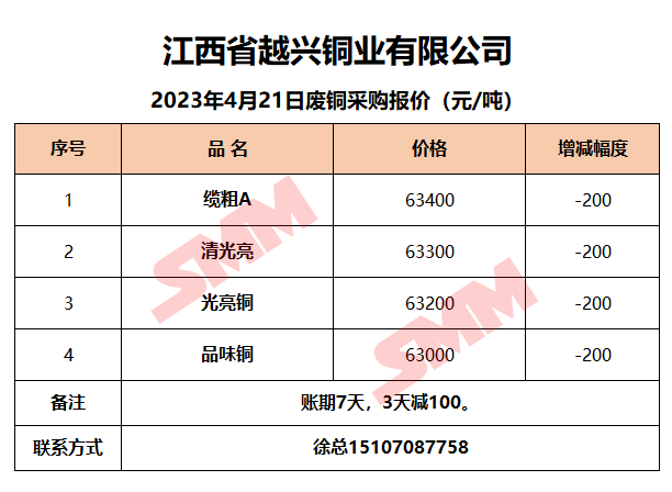 今日江西越兴,废铜采购报价已更新,有货的朋友欢迎联系我们!